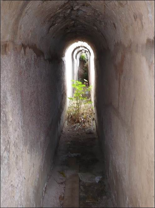 la captazione delle acque avviene altrove) l’ingresso (quinta foto) da cui si accede ai sotterranei, bui e fatiscenti, da