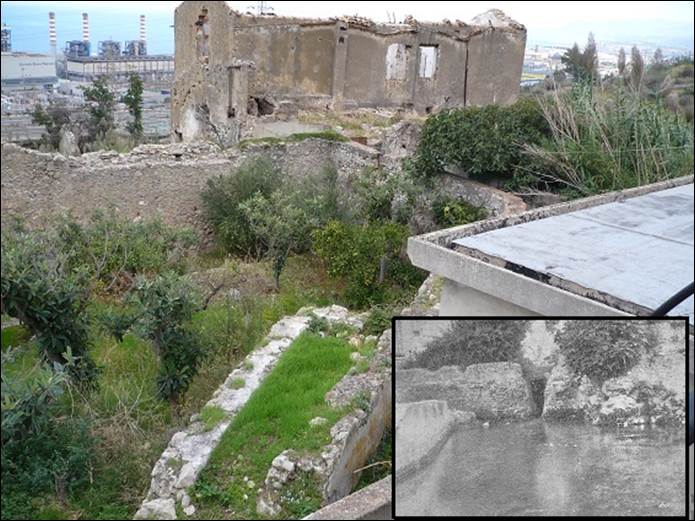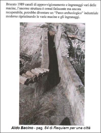 alcuni dei vecchi opifici idraulici di Brucato (vedi CA 24) e, in un ritaglio, una vecchia foto del