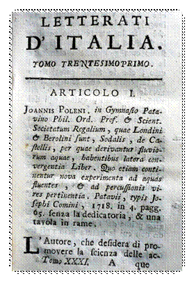 a destra l’inizio della relativa recensione, nel Giornale dei Letterati d’Italia