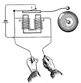 Tenendo in mano due elettrodi collegati al campanello della Morse