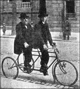 piedi scelse, dopo aver scartato per la sua pericolosità il normale tandem biciclo, un più stabile triciclo, una specie di risciò, in cui, si badi, pedalano sia il