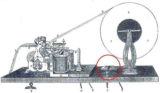 (o più esattamente il Vail Correspondent, per onorare il suo inventore) era incorporato nelle prime scriventi Morse o Register (immagine a sinistra, dentro il cerchio rosso).