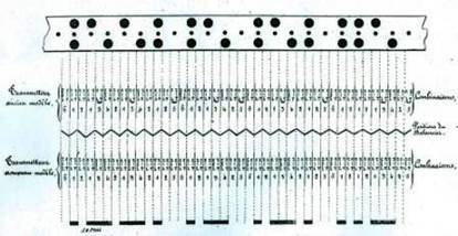 disegno è un pezzo di zona perforata con il precisissimo diagramma di timing; il terzo disegno (e anche la foto in calce) è il